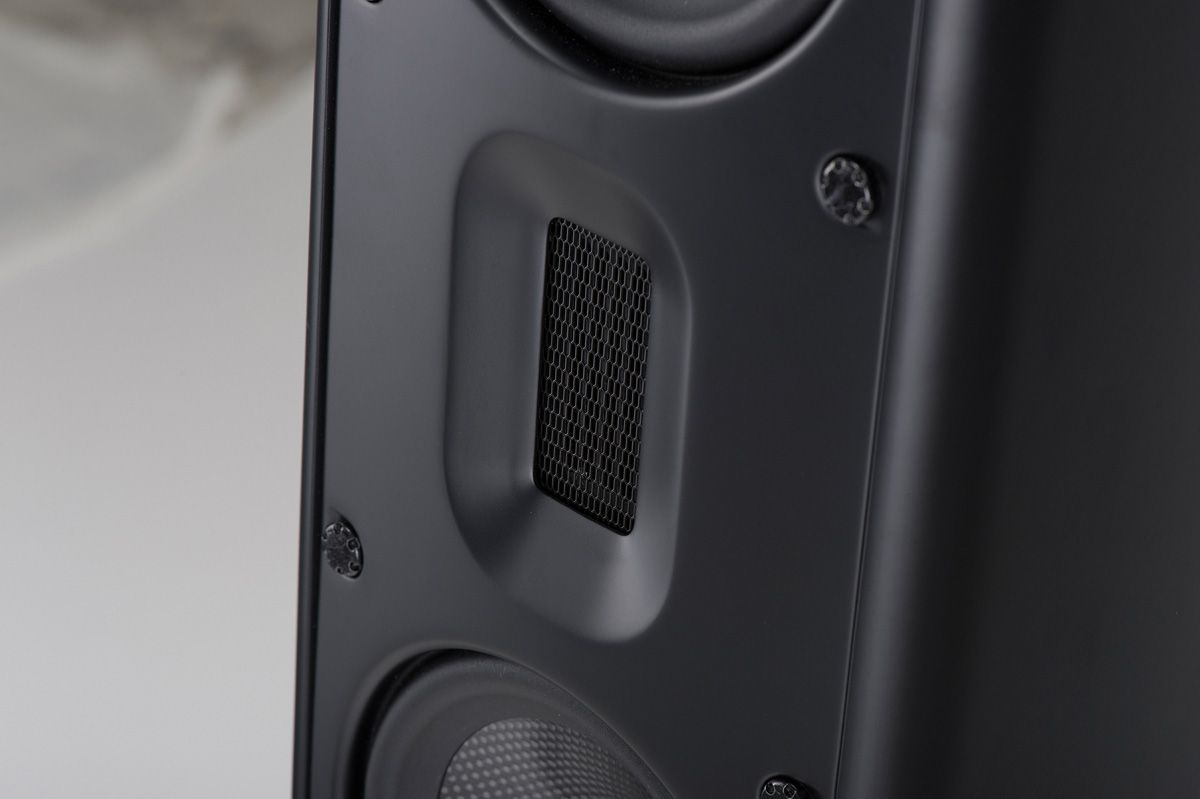 Il nostro obiettivo principale era creare un piccolo diffusore che facesse davvero bene ciò che fa. La porta reflex è posizionata frontalmente e utilizza inserti speciali che riducono il rumore a un livello estremamente basso. Sebbene il diffusore sia piccolo ed elegante, la riproduzione musicale è vivace, brillante e decisa, con bassi che non vi aspettereste in una dimensione così compatta. Il diffusore ha una porta reflex frontale per consentirne il posizionamento vicino alla parete posteriore.
